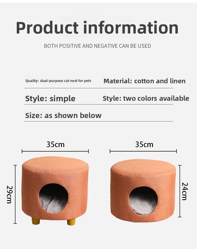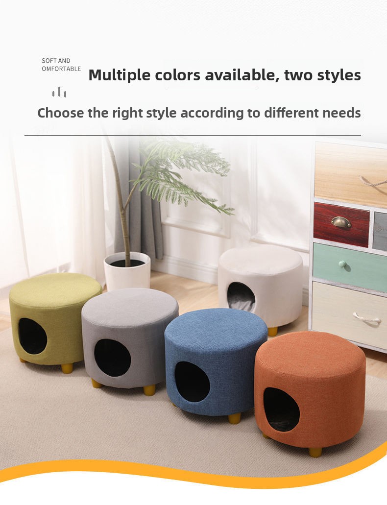 Dual-purpose Design: Combines cat bed and stool functionality for space-saving household use